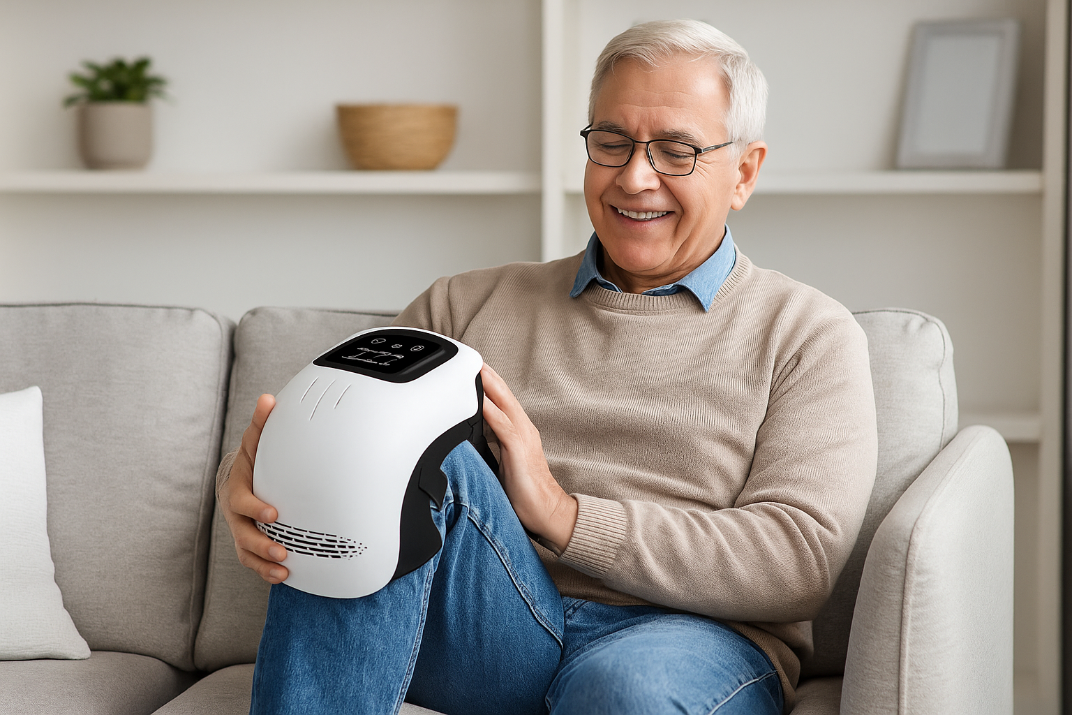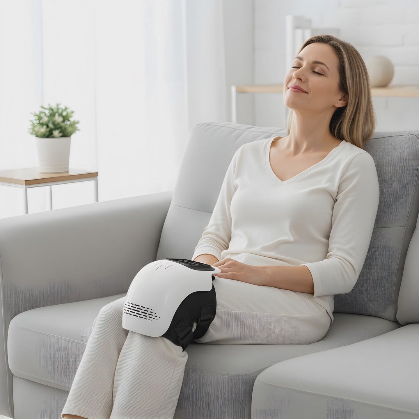 The Smart Knee Massager combines soothing heat, vibration, and infrared light
